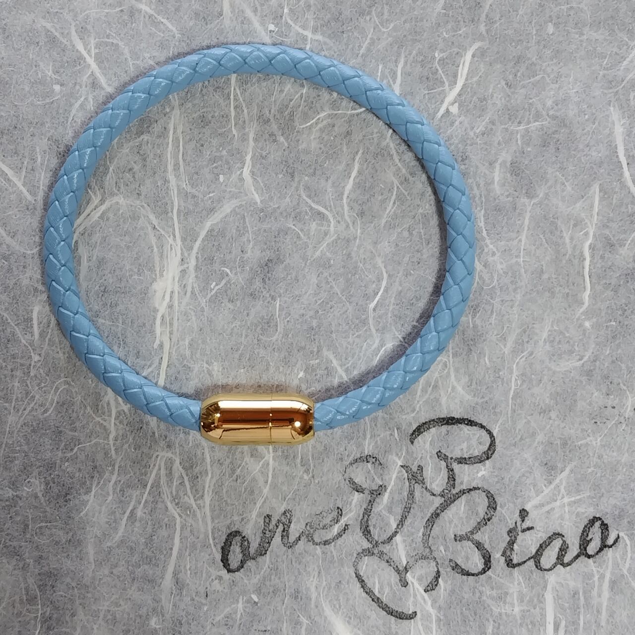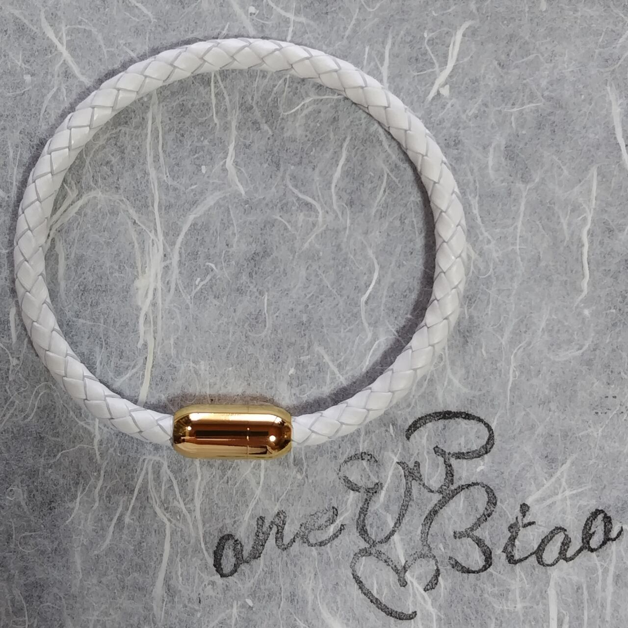 マグネット着脱式の編み込んだ革を使ったブレスレットです。